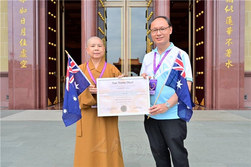 南半球天空有1顆星 註冊命名星雲大師 |2023.10.08 語音朗讀 19888觀看次 字級 大 中 小 國際佛光會雪梨協會在國際太空登記處,註冊「星雲大師」星星。圖/國際佛光會雪梨協會提供 【人間社記者王淑芬高雄大樹報導】「今後想念大師只要仰望星空南十字座(Crux)就能找到『星雲大師』這顆星星。可以安慰人心,也能導引人生的方向!」國際佛光會雪梨協會在國際太空登記處註冊「星雲大師」星星,這顆明星已獲得官方登記證書。證書今(8)日由澳洲雪梨協會的代表人胡命安敬獻給佛光山開山祖師星雲大師,也盼大家在緬懷想念大師時仰望星空,看到大師在夜空中閃耀,照亮大地。這顆命名為「星雲大師」的星星,位於南十字座(Crux)161434338 的範圍內。星星的天文驗證位置是赤經12時44分18.12秒,赤緯-56°28’35.68",亮度10.1470000。南十字座是南半球一顆著名的星座,由五顆明亮的星星排列成十字形狀,常用於導航,也作為澳洲國旗上的象徵。胡命安出席「2023國際佛光會世界會員代表大會」於緬懷大師儀式中敬獻紀念品,他將「Star Name Deed」獻給大師,並分享所有信眾,希望大家透過仰望星空的方式,緬懷大師。國際佛光會雪梨協會代表胡命安(右)、滿可法師,代表敬獻「星雲大師」星星認證書。圖/人間社記者趙啓超胡命安受訪表示,「星星」溫暖人心,更是一種指引,「星雲大師」就像紐澳人民的祖先一樣,指引了他們發現了這塊可以安身立命的地方。擔任電腦工程師的胡命安表示,和大師有約30年的因緣,他追隨大師的教誨努力奉行,被大師的精神感召,所以希望透過註冊星星「星雲大師」的方式,讓大家知道大師一直都在,也在天上眷顧著大家。佛光山紐澳總住持滿可法師表示,大師為世界帶來很多的資糧,大師尤其喜歡星空宇宙,於是澳洲雪梨協會在大師圓寂後,籌畫向國際太空登記處申請「星雲大師」這顆星星,順利取得證書,表達對大師的緬懷。滿可法師說,將「星雲大師」的註冊敬獻給大師之後,也公布星星的位置讓大家透過網址或App搜尋,於仰望星空時看到「星雲大師」閃爍,就像大師慈悲的心光,感受到大師無盡的智慧和慈悲,更是對大師永恆的紀念。滿可法師歡迎無論在世界哪個角落的人,一起仰望星空並感念大師的慈心悲願,如浩瀚星雲遍寰宇,讓平安幸福照五洲。一起看星星!瀏覽這顆命名為「星雲大師」的星星或下載「Find my star」App,輸入號碼 161434338。一顆永恆的心「星雲大師」閃爍。圖/國際佛光會雪梨協會提供 前一篇文章 阿富汗6.3強震 暫無台灣人受影響 下一篇文章 中職/恩力6.1局7K好投 悍將隊史1500勝 熱門新聞 01【閃文集】 駝峰天使2025.11.0402父親的山水2025.10.3103佛光會送家具至光復 助受災戶重建家園2025.10.3104魏碧糈 用茶講心教品德2025.11.0105印尼佛教大學教職員 佛光山佛學院培訓 2025.10.3106【遇見荷】 呼喚你的名字2025.10.3107【營養專欄】破解糖尿病飲食4大迷思2025.11.0108【墨香流韻】一筆清香 一念無塵 梅適情2025.11.0209社論--新台幣改版2025.10.3110梵蒂岡跨宗教對話60周年 教宗喜會中華人間佛教代表2025.10.31 訂閱電子報 台北市 天氣預報 台灣一週天氣預報 相關報導 翡翠水庫支援發電 台電須付補償費林信義:台灣於APEC能見度提升國軍裝備採購 證實5案延宕鄭麗文:讓國民黨羊群變獅群APEC林信義進場與國旗同框陸勝1號操演 女兵不讓鬚眉