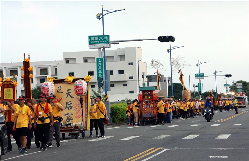 嘉義市天后宮玉三媽「行百里心香路」徒步進香活動於7日啟駕,10日晚間回鑾安座,近300名信眾「花婆腳」護駕隨行玉三媽鑾駕,為嘉南地區最具規模且富特色的盛事。圖/中央社