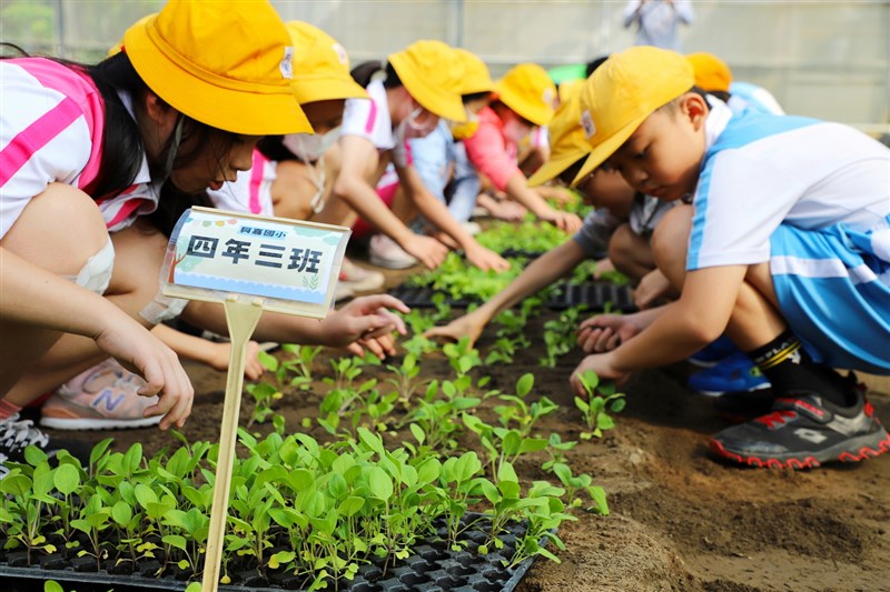嘉大推廣食農教育,教導興嘉國小學生種植小松菜。圖∕嘉義大學提供