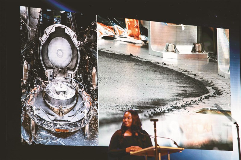 NASA署長尼爾森(Bill Nelson)在德州休士頓NASA詹森太空中心(Johnson Space Center)召開記者會,首度曝光歐塞瑞斯號採集到的黑色塵埃和礫石樣本影像。