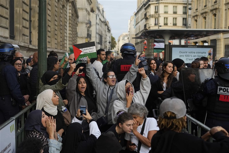 美法選邊? 布林肯訪以宣示美國力挺 法國禁挺巴勒斯坦活動 |2023.10.13 語音朗讀 319觀看次 字級 大 中 小 美國國務卿布林肯(左)12日到以色列表達美國的支持,旁為以色列總理納坦雅胡(右)。圖/新華社10 月 12 日,巴黎抗議者在聲援加薩巴勒斯坦人民的集會上高喊口號。圖/美聯社抗議者在巴黎街頭聲援加薩巴勒斯坦人民。圖/美聯社 【本報綜合外電報導】美國國務卿布林肯12日抵達以色列並宣示美國對以色列的支持堅定不移,還透露自己也是猶太人後裔。隨著以巴衝突到了前所未有的高度,世界各地都上演了支持以色列與巴勒斯坦雙方的示威抗議,法國內政部長達馬南(Gérald Darmanin)12日宣布,因應反猶太行為上升,在巴勒斯坦激進組織哈瑪斯與以色列開戰期間,系統性禁止挺巴勒斯坦的示威活動。哈瑪斯10月7日發動突襲,在以色列槍殺了1200多人,抓了約150人當人質,是以色列1948年建國以來,受創最重的一次。以色列接連六天以空襲和砲擊報復,加薩走廊已有1400人罹難,超過40萬人流離失所。以色列已召集36萬名後備軍人,準備展開地面攻勢。美國國務卿布林肯12日抵達以色列國防部拜訪,布林肯在演說時表示:「站在各位眼前的不僅是美國國務卿,更是一名猶太人」。布林肯說:「我的祖父摩里斯從俄國逃到美國,祖母則躲過集中營的厄運。哈瑪斯對以色列和他處猶太人的大屠殺,我感同身受」。布林肯12日與以色列總理納坦雅胡會談,後者矢言打垮哈瑪斯,布林肯則重申美國的支持不變。布林肯告訴納坦雅胡:「只要美國存在一天,就會永遠站在以色列這一邊」。布林肯還說,哈瑪斯不能代表巴勒斯坦人民。布林肯隨後前往約旦,並於13日會見巴勒斯坦自治政府主席阿巴斯,還要去沙烏地阿拉伯、埃及、阿拉伯聯合大公國與卡達,施壓哈瑪斯釋放美國公民在內的人質。另外,據法新社報導,法國內政部長達馬南(Gérald Darmanin)向警方發出了「嚴格指示」,「因為有可能造成擾亂公共秩序,挺巴勒斯坦示威應予禁止」,並指「組織這些明令禁止的示威應該導致逮捕」。達馬南同時呼籲警方保護法國猶太人造訪的所有地點,例如猶太會堂(synagogues)和學校。同時,任何在法國領土犯下反猶太行為的外籍人士將遭到「立刻驅逐出境」。法國內政部告訴法新社,未來將對「組織者與搗亂者」進行逮捕。不過,在達馬南發出禁令後,仍有示威者來到歷史悠久的共和廣場(Place de la République)。群眾吹口哨與鼓掌,並用法語高喊「我們都是巴勒斯坦人」跟「巴勒斯坦將活下來,巴勒斯坦將獲勝」等口號。一位抗議者接受路透訪問時,稱挺巴勒斯坦集會禁令「極不公正」,並稱自己因為戴上巴勒斯坦傳統頭巾「Keffiyeh」而被罰款135歐元(折合新台幣約4589元)。另一位叫瑞安(Ryan)的與會者則認為禁令「在法治下不正常」。他說,「在法國,他們所說的法國是一個偉大的國家,卻不能如同你的權利自由示威。不幸的是,此時自由不再。我們被迫違抗法國的法律,正如人們所說,示威以展示真相」。根據報導,法國總統馬克宏12日晚間向全國發表演說時呼籲人民繼續團結一致,「正是這面團結的盾牌,將保護我們免於漸行漸遠與所有的仇恨」。但數百名示威者無視禁令與聚集到巴黎市中心,警方與憲兵則動用催淚瓦斯跟噴水車試圖加以驅散。 前一篇文章 以色列24小時內展開地面攻擊!美國務院宣布包機撤僑 下一篇文章 加薩走廊食物飲水、醫療資源快耗盡 居民喊「幫幫我們」 熱門新聞 01渥太華佛光山 授海狸童軍領巾2025.11.1702警告日本 陸黃海軍演、籲暫勿遊日 2025.11.1603【閃文集】貓咪成長的魅力2025.11.1804【詩】遊園地.競馬場2025.11.1705墨西哥熱氣球節 高空爭豔2025.11.1606【快樂塗鴉簿】熱鬧的內灣小鎮2025.11.1707克林姆富家女肖像畫 估值46億元2025.11.1708AMR機器人 是什麼?2025.11.1709芬普尼毒蛋 又爆4萬顆流入市面2025.11.1610落葉刺繡 巴西百鳥寫真集2025.11.17 訂閱電子報 台北市 天氣預報 台灣一週天氣預報 相關報導 巴西COP30展館 驚傳失火美施壓 料烏27日前簽停戰協議孟加拉5.7淺層地震 至少6死百傷印尼火山噴發 撤離逾900人戰地無童年沙國王儲訪白宮 允投資美31兆元