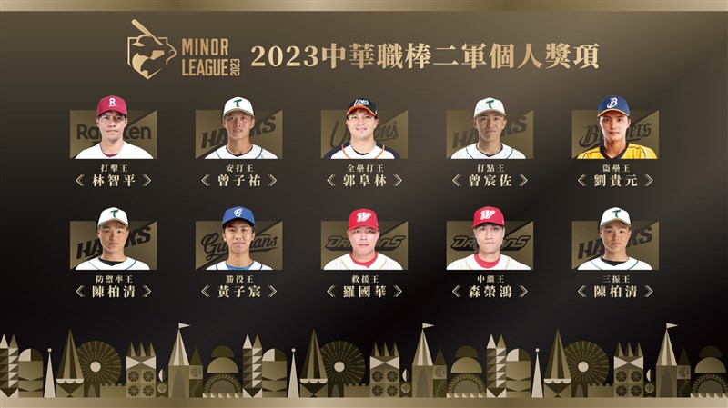 樂天桃猿林智平本季出賽65場,總計209打席、182打數、68支安打,補足打席數後打擊率0.3598排名第一,拿下打擊王寶座;統一7-ELEVEn獅郭阜林47場出賽,擊出8支全壘打,成為今年的全壘打王;中信兄弟劉貴元與隊友宋晟睿同樣是14次盜壘,因盜壘成功率較高拿下二軍盜壘王。