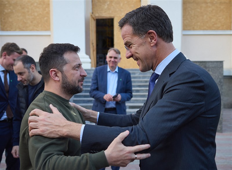 烏克蘭人近日因以巴戰起、美歐支持不確定,擔心西方世界的援助將減少。圖為烏國總統澤倫斯基(左)13日在敖德薩與荷蘭總理呂特舉行會談。圖/法新社