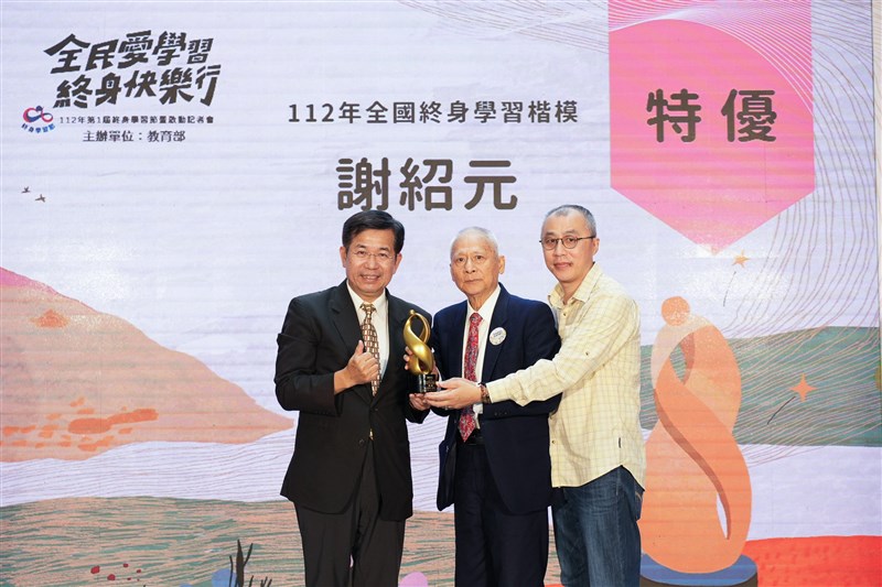 【記者曾博群台北報導】今年是終身學習節元年,教育部今天發表「終身學習宣言」,並頒發112年全國終身學習楷模獎,確診患有阿茲海默症的80歲老先生謝紹元,積極參與淡水社區大學,一路修了136學分,並擔任義工協助社大的大小事,獲「特優獎」殊榮。