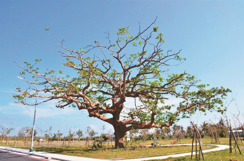 其他樹木遭連根拔起,它依然屹立不搖,即便稍有損傷,但主要枝幹無損,這幾天更是長滿翠綠樹葉。