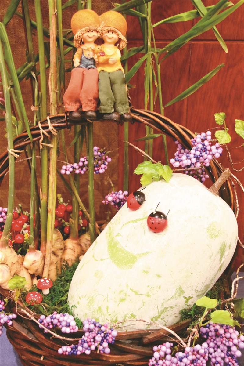 【記者江俊亮嘉義報導】「我很醜,可是我很安全!」嘉義市社區大學自然農法分享班,昨日舉辦年會,學員們把共學、共榮、共享的農產品,包括長得太醜、太彎、太碩大或奇形怪狀的果實,加以「化妝」後,進行創意評比,宛如一場歡樂的嘉年華。