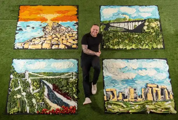 藝術家用蔬果創作 英國絕美風景入畫 林奕榮 |2023.10.18 語音朗讀 1315觀看次 字級 大 中 小 英國威爾斯藝術家威布恩以有機蔬果創作風景畫。圖/取自太陽報 【記者林奕榮綜合外電報導】評斷藝術作品的詞彙裡,「美味」並不常見,但英國一位藝術家的畫作充分符合這樣的描述。威爾斯藝術家威布恩(Nathan Wyburn)近來使用蔬菜與水果創作了4幅作品,栩栩如生地呈現英國幾處知名景觀;用來創作的食材也沒有被浪費,創作完成後,這些食材被製作成食物,未使用的材料也被捐贈給慈善機構。威布恩擅長以非傳統材料創作,包括食物和日常用品;此次他與英國有機農產品業者Yeo Valley Organic合作,在Yeo Valley Organic知名主廚帕姆佛蕾(Ali Pumfrey)的幫助下,以蔬菜和水果創作4幅「可食用的美味作品」,這些作品的主題分別是巨石陣(Stonehenge)、埃文峽谷(Avon Gorge)、瑞波赫德高架橋(Ribblehead Viaduct),以及巨人堤道(Giant's Causeway)。威布恩用蔬果創作的「瑞波赫德高架橋」風景畫。圖/取自太陽報威布恩與帕姆佛蕾聯手創作,選用的材料均為新鮮的有機蔬果,包括草莓、藍莓、覆盆子、甜菜根、羽衣甘藍、花椰菜、馬鈴薯、胡蘿蔔;他們耗費48小時,共用掉約67公斤的食材,製作出栩栩如生的作品。威布恩與帕姆佛蕾草莓、藍莓等食材創作4幅「可食用的美味作品」。圖/取自太陽報英國《太陽報》(The Sun)報導,這次創作活動的目的是紀念收成季節的結束並慶祝豐收,並宣導美味食材和食物來源的重要性。Yeo Valley Organic委託民調公司OnePoll.com進行的訪調顯示,在2000名成年受訪者中,約有41%認為如果能知道食物來自哪裡,對食物會更滿意也更安心,但只有24%的人能說出他們食用的農產品來源。該訪調也發現,49%的成年人傾向優先選擇在英國種植的產品,而非從海外空運來的產品;45%的受訪者表示,願意盡可能支持當地農民。另外,在採購生鮮食品時,超過一半(53%)的人優先考慮是否美味,47%的人希望購買當季產品,41%的受訪者喜歡以有機種植方式生產的食物。威布恩說:「我希望透過自己的作品,讓人們與自然世界更接近;我曾經造訪埃文峽谷,這些令人震撼的自然景觀,總是會讓我心生敬畏。也因此,我很高興有機會接受這項很特別的創作挑戰,我們必須思考如何把這些在地食材轉變成真實的藝術作品,這個過程非常有趣。」知名主廚帕姆佛蕾擅長有機食蔬食。圖/取自太陽報Yeo Valley Organic的主廚帕姆佛蕾表示,大自然的美景賞心悅目,食物也應該如此。事實上,依據Yeo Valley Organic的訪調,47%的受訪者表示,他們在品嘗食物之前,會享受欣賞食物的樂趣。帕姆佛蕾說:「我們希望透過這項以有機食材創作活動,激勵人們支持本土有機農業,並幫助保持自然景觀。」創作完成後,帕姆佛蕾把這些景觀食材製作成食物,並且把其他沒用上的食材捐贈給食品慈善機構City Harvest,預計可提供143份餐點。 前一篇文章 【新聞千里眼】 下一篇文章 周末星空煙火秀 獵戶座流星雨登場 熱門新聞 01【詩】草螟公2025.12.1802與精品品牌撞鞋 印度涼鞋打專利戰2025.12.2103高雄新航線明啟動 佛光山成亮點2025.12.1704福建艦航經台海 空拍照首曝光2025.12.1805資助流浪漢之家 里斯本佛光人跨文化送暖2025.12.1806佛州光明寺蔬食餐會 年終感謝警察2025.12.1707多倫多佛光山龍獅團 中華文化薪火相傳2025.12.1808佛光山高雄佛教堂 營建工地評鑑特優2025.12.1909佛大榮譽教授曾淑賢 獲圖書館事業貢獻獎2025.12.1710【島嶼拼圖】中壢醫院古建築2025.12.17 訂閱電子報 台北市 天氣預報 台灣一週天氣預報 相關報導 北市隨機攻擊案 警:凶嫌籌畫近2年日月潭落羽松 相映成趣富里喵樂園 向貓奴招手北市隨機攻擊 總統令提升反恐警力義大利管樂旗隊 重現中世紀慶典氛圍北車、捷運中山站隨機攻擊 3死6傷 作者其他文章教宗方濟各辭世 享壽88歲大谷貼身翻譯涉賭案 彙整事件始末一次看美聯準會官員對物價受控有信心 稱2%通膨目標達成在望2024年H&P護照排名 這些國家並列榜首 台灣35名赴日旅遊大受歡迎 記住這些漢字讓你暢行無阻《全球金融》2023富國排名 台灣躍居14高於中日韓