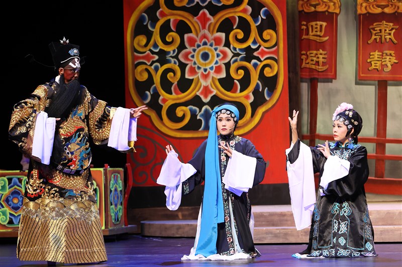 明華園總團《散戲》戲中戲包公孫翠鳳(左)、陳昭婷(中)與歌手錦雯(右)扮演真假秦香蓮。圖/明華園總團提供
