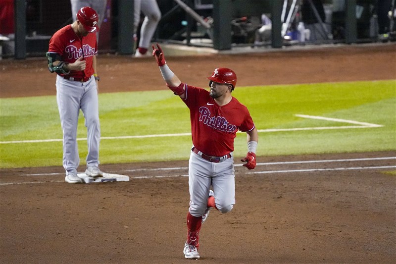 【記者張哲郢綜合外電報導】MLB美國職棒費城費城人與亞利桑那響尾蛇在國家聯盟冠軍賽打完前4戰平手,21日費城人先發動速度戰,比賽中段史瓦伯(Kyle Schwarber)、哈波(Bryce Harper)合力開轟,6:1率先在系列賽聽牌。