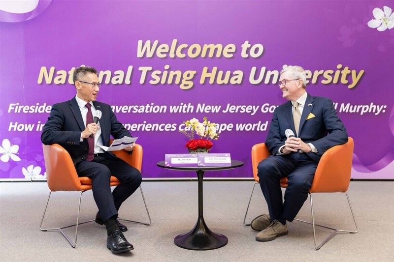 美國紐澤西州長墨菲(Phil Murphy,右)率團訪台,日前與清華大學校長高為元(左)以「國際經驗如何塑造我們的世界觀」為題進行對談。圖/清大提供