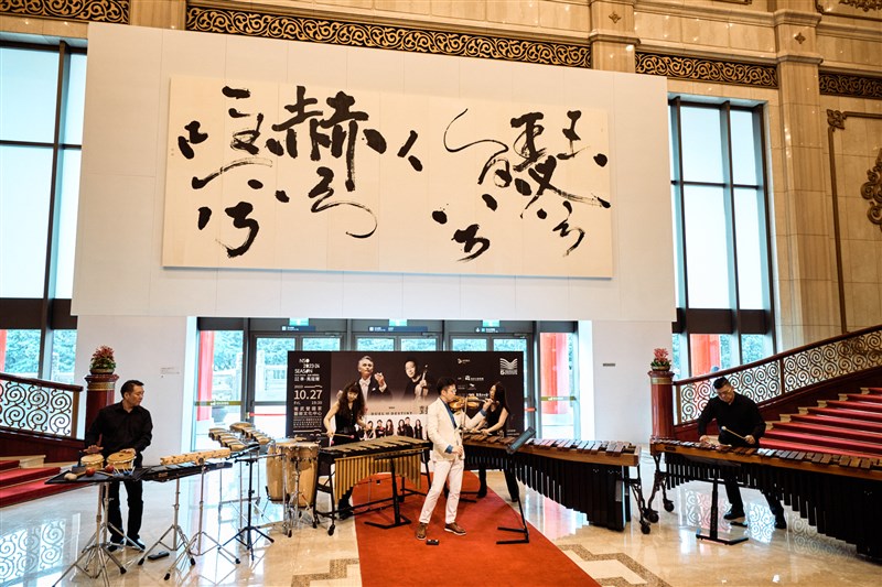 國家交響樂團(NSO)客席小提琴家黃俊文(中)與朱宗慶打擊樂團音樂家,「精彩對決」音樂會上將攜手演出,圖為今(24日)天記者會現場演出片段。圖/NSO提供