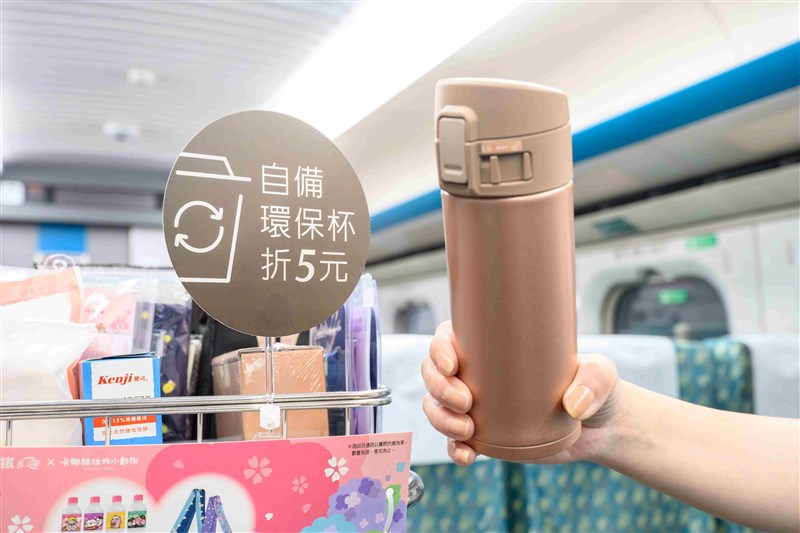 台灣高鐵今天(25日)宣布,從11月起,旅客凡自備環保杯於高鐵列車上購買熱飲,就可現折新台幣5元。圖/台灣高鐵提供