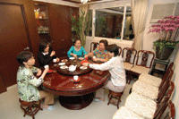 老人家怕吵,年輕人愛鬧,餐後的餘興節目多半為後者而設計,唱歌或喝茶,「續攤」得見機行事,要顧及到客人告辭歸家的時間。