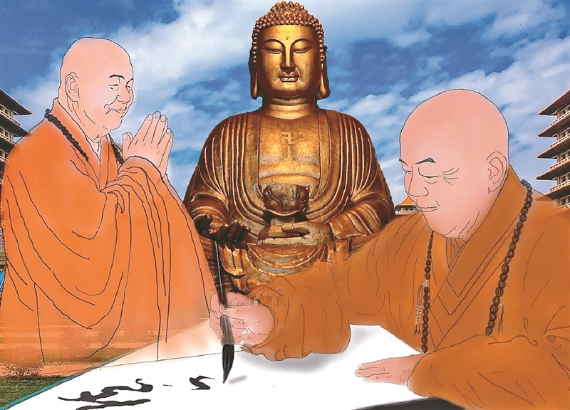 正進手繪創作星雲大師圖像。圖/正進提供