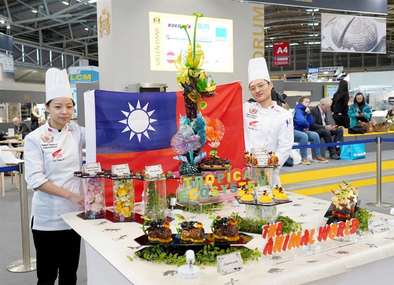 今年的點心賽在25、26日舉行,共有南韓、挪威、台灣、德國4隊參加,參賽選手以「動物世界」為主題,必須限時完成大蛋糕、小點心、巧克力、主題甜點等作品。
