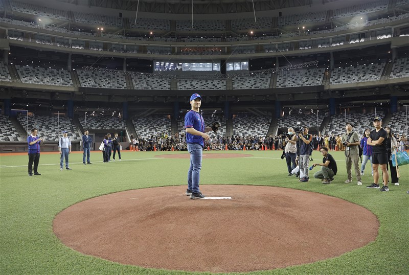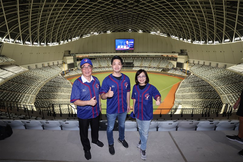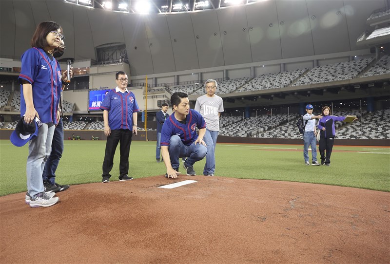 蔣萬安在開箱大巨蛋時,站上投手丘試投,到打擊區揮棒,坐在觀眾席時,也頻頻稱讚坐椅舒服,不輸大聯盟球場,蔣萬安還拿著加油棒,想像比賽時替中華隊加油,甚至忘情的喊出「韓國隊,三振他」。