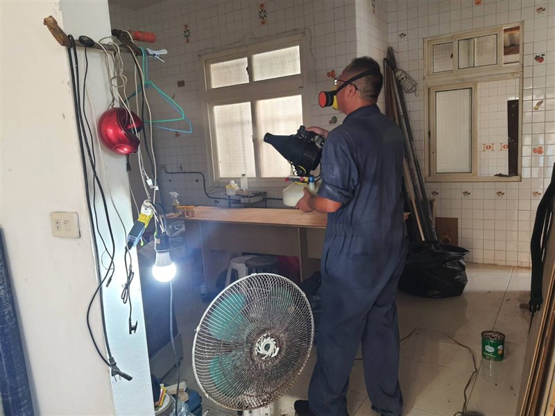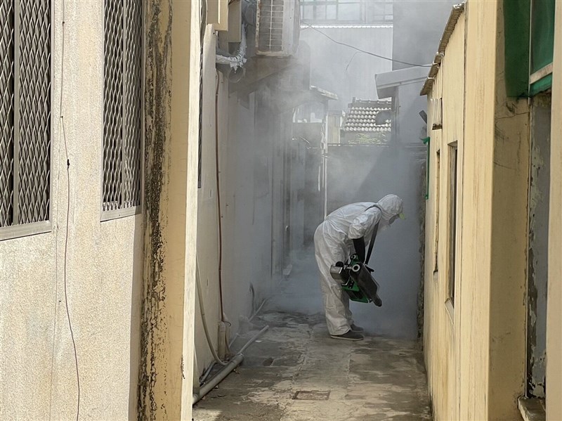 澎湖縣防疫團隊10月25日至26日已對個案居住地周邊100公尺範圍及工作地點,執行強制地毯式孳生源檢查及噴藥滅蚊等緊急防治工作。圖/王勇超