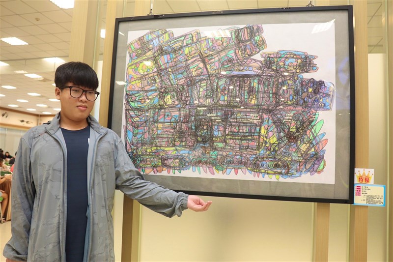 進入特殊學校,他展現繪畫天分,作品鮮艷豐富與多元,細膩的線條都是他豐富情感的表現。他自2021年起陸續參加特教生創作聯展,每年都獲佳績,今年的特優獎,更展現他充滿想像和創意天分。