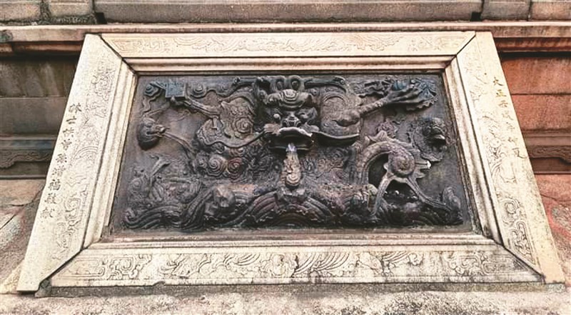 雕刻有龍身及海浪的正殿御路。圖/黃筱婷