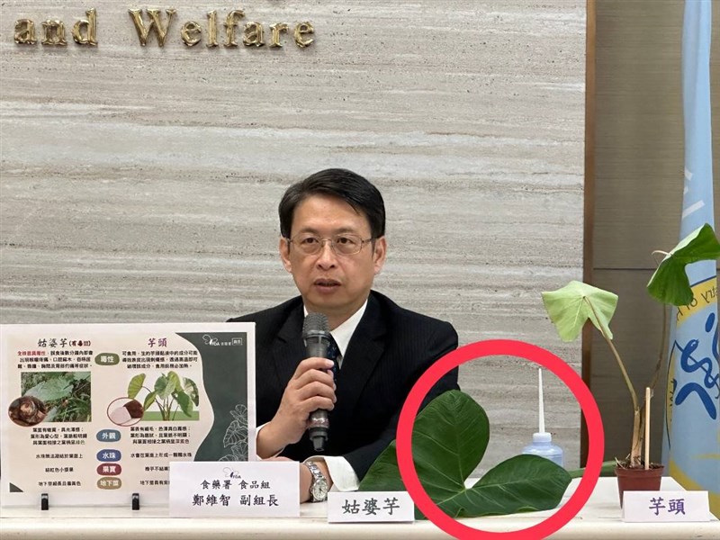 食藥署記者會拿出的姑婆芋葉被專家指出「根本不是姑婆芋」。圖/鄒尚謙