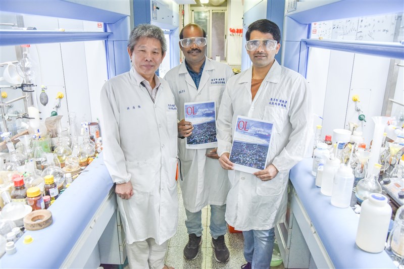 台師大表示,化學系兩位印度籍博士班研究生Jivan Shinde與博士後研究員Veerababurao Kavala,在化學系教授姚清發的指導下,繼2021年以新抗癌有機化合物的論文後,研究成果第5度榮登國際知名期刊封面,備受肯定。