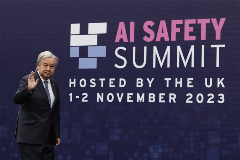 11月2日,在英國舉行的首屆人工智慧安全高峰會落幕,聯合國祕書長古特瑞斯在會中呼籲採取「一致、持續的全球」策略,因應AI快速發展帶來的風險。圖/新華社