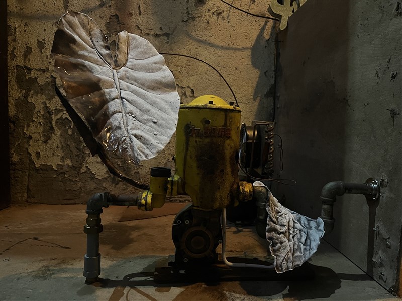 首獎得主陳肇驊常以改裝工業產品或自製機器描述環境或體制的樣貌,這次他改造除濕機的核心結構,於其上焊接一棵銅製的姑婆芋,並利用原本機器的特性使之結霜;透過生活經驗發現矛盾,尤其是人與自然的矛盾關係,為陳肇驊特別關注的方向。