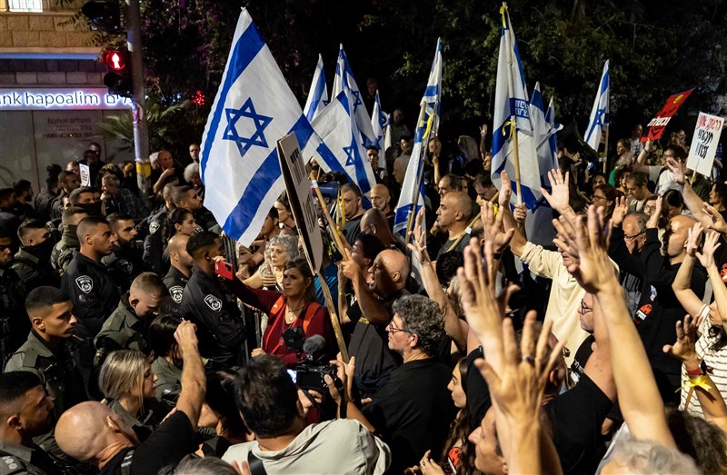 以色列人民怒火示威 76%民眾希望納坦雅胡下台 |2023.11.06 語音朗讀 253觀看次 字級 大 中 小 以色列各地爆示威,耶路撒冷抗議群眾4日在以色列總理納坦雅胡官邸附近高舉國旗和標語示威。圖/法新社 【本報綜合外電報導】以色列4日公布的民調顯示,在以色列國內示威蔓延之際,多數民眾希望總理納坦雅胡請辭,原因是10月7日哈瑪斯攻擊以色列,加上他對當前加薩戰爭處理不當。以色列電視台「12頻道」(Channel 12)公布的民調發現,76%的以色列民眾希望納坦雅胡(Benjamin Netanyahu)請辭,有64%民眾認為戰後應立即舉行大選。值此之際,以色列各地示威正在蔓延,包括納坦雅胡家鄉塞沙里亞(Caesarea)也有示威,抗議人士4日再次呼籲停火。圖/法新社以色列各地爆發示威,包括海法(Haifa)、埃拉特(Eilat)、俾什巴(Beersheba)及特拉維夫(Tel Aviv)等地。在特拉維夫市中心,有人質家屬睡在陸軍總部前。除此之外,耶路撒冷(Jerusalem)4日也有數百人聚集,包括納坦雅胡的官邸外,有在場示威者試圖衝破安全路障。以色列巴伊蘭大學(Bar-Ilan University)政治學講師葛林(Toby Greene)指出:「納坦雅胡和其執政聯盟的支持度早於10月7日前就已經疲弱,戰爭爆發後更是進一步下滑。」23歲女子班阿米(Ella Ben-Ami)的父母也遭到綁架。她告訴美聯社,納坦雅胡須要負責。圖/法新社 前一篇文章 俄羅斯不撤軍 烏克蘭表示不和談對抗到底 下一篇文章 同情以色列聲音消失 美國民眾挺巴勒斯坦30萬人上街 熱門新聞 01瑕疵品反爆紅 哭哭馬賣到缺貨2026.01.1402南亞偏鄉師參學新馬寺 交流創意教學法 2026.01.1403平價版人類洗澡機 預計年底開賣2026.01.1404日電鐵貴志站 任命第3代貓站長2026.01.1405新馬寺 佛光兒童歡喜入學禮2026.01.1306重慶川普紅不讓 談旅遊給人歡喜2026.01.1407菲律賓三好校園頒獎 129校獲表揚2026.01.1308台南林鳳營 落羽松花海2026.01.1309野森動物學校 17日試營運2026.01.1310【人間風景】往事好回味2026.01.13 訂閱電子報 台北市 天氣預報 台灣一週天氣預報 相關報導 阪神大地震31周年 民眾點蠟燭祈禱阿提米絲2號太空船 下月載人繞行月球非洲最大海上貧民社區 宛如威尼斯馬查多贈川普 諾貝爾和平獎章猴子泡溫泉林肯號航母赴中東增援 川普:伊朗殺戮已停 是否動手再觀察
