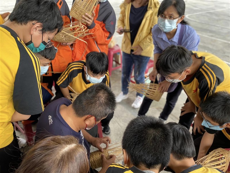 花蓮縣立吉安國中太魯閣族語課程安排學生學習傳統的藤編製作。圖/教育部提供