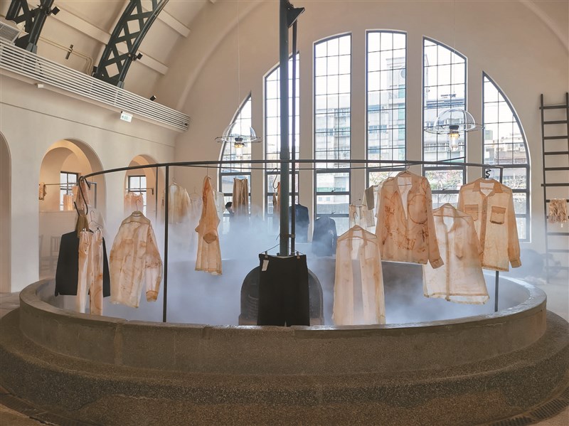 員工澡堂浴池的歷史衣物與熱氣展示。圖/丹青