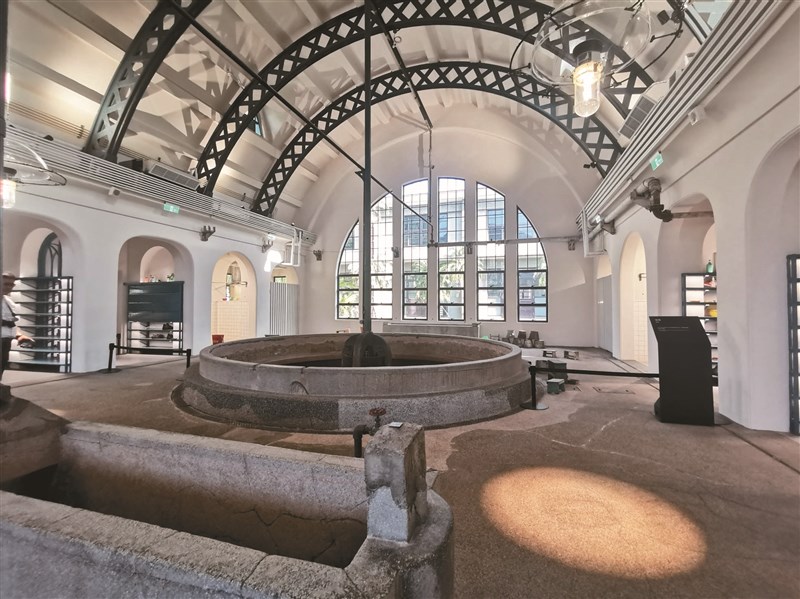 最令人嘆為觀止的是中央展區的浴室,設有兩座圓形澡堂以及三座較小的長方形水槽,職工在泡澡前必須先在水槽旁洗淨身體,泡澡時還可透過藝術風格的玻璃窗欣賞窗外風景。至於澡堂提供的熱水,則是循環利用原動室鍋爐產生的蒸汽,十分環保。