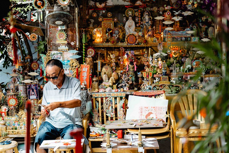 楊富明的創作以鋁片為素材,宗教信仰為底蘊,作品色彩繽紛具視覺張力。圖/高雄市文化局提供