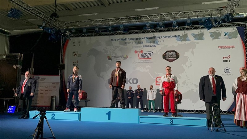 謝宗庭(中)完成健力世錦賽男子66公斤總和連霸。圖/體育署提供
