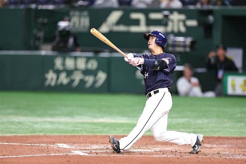 首度征戰東京巨蛋就敲出全壘打,還是生涯首發滿貫砲,林靖凱說:「打出去就知道會過,首次滿貫砲多少感覺會不一樣,腦袋浮現『怎麼會是我』,也是我們隊上首轟,沒特別想過是誰,但沒想到是我。」