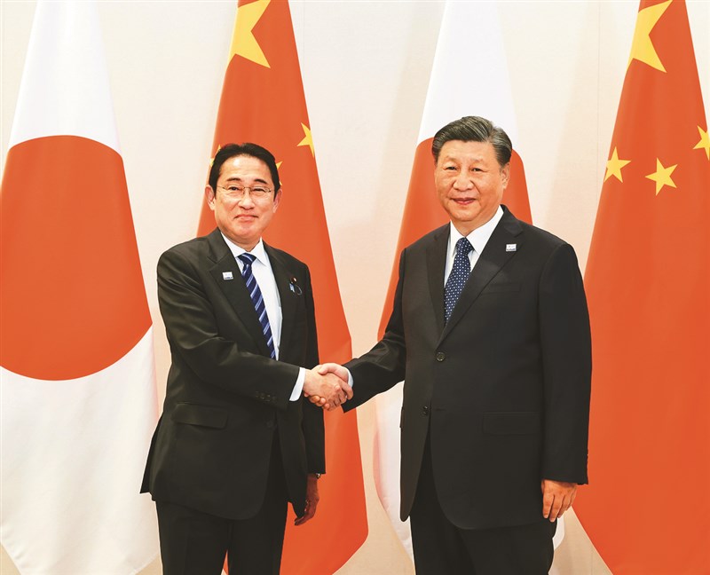中國大陸國家主席習近平(右)與日本首相岸田文雄(左)在舊金山APEC會場晤談。