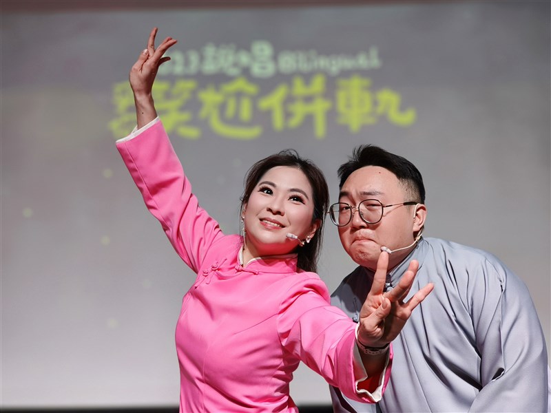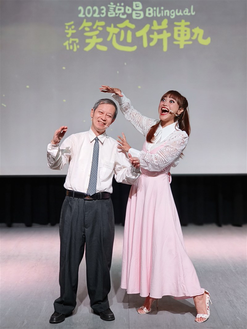林沛萱(右)與陳慶昇搭檔演出〈講來講去講台語〉。圖/台北曲藝團提供