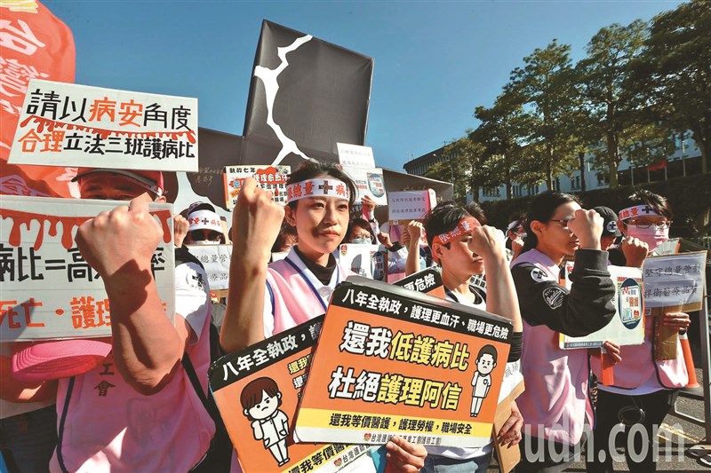 新冠肺炎疫情期間許多護理師出走,32萬名護理人員,僅19萬人執業,昨多名醫療人員走上凱道,呼籲政府重視醫療職場環境;衛福部照護司長蔡淑鳳說,日前針對3班護病比標準,與各層級醫界代表及護理團體開會,在醫學中心與區域醫院已有共識。