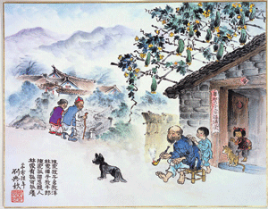 陳家老夫妻,每次經過林家門前,看到林仔坐在竹凳上抽著煙斗,含飴弄孫,心理有說不出的羨慕。但是自己的子孫在遙遠的異國,上次二兒子全家回台灣,老夫老妻高興得整天合不攏嘴,但是兩個孫子卻一句台灣話都聽不懂,只會講那嘰哩咕嚕的外國話,祖孫兩代只好比手畫腳地溝通。