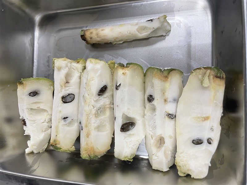 台東改良場表示,冷凍鳳梨釋迦具有不同於鮮果的口感及滋味,甜度感覺稍降且質地綿密;以機械進行果實削皮及分切作業,可快速、方便且衛生的獲得冷凍鳳梨釋迦果肉運用,未來將持續整合電控及自動化作業,完善整個加工作業流程,以供加工、冰品或餐飲業者參考運用,促進鳳梨釋迦多元利用及發展。