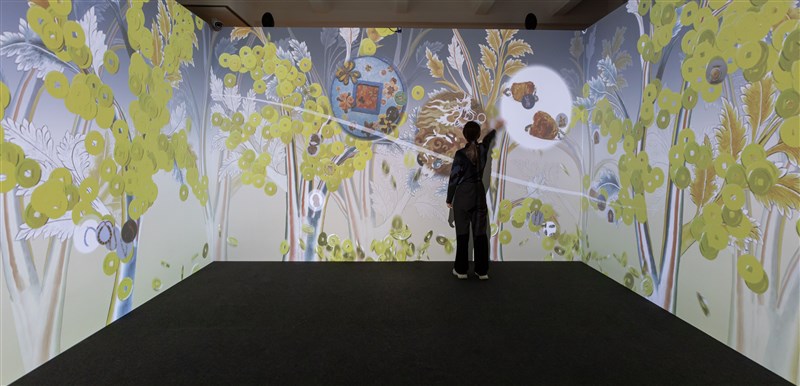 《好運連連-財神與蒙藏生活藝術之美》特展打造「聚寶招財樹」互動區,觀眾可在遊戲互動中,認識蒙藏的吉祥文物,進而尊重欣賞不同族群文化信仰。圖/文化部提供