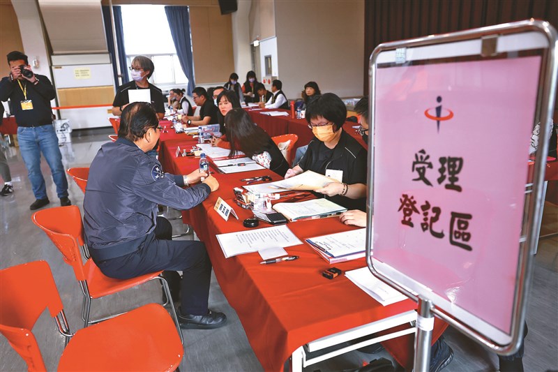 2024總統與立委選舉登記昨日開跑。圖為新北市選舉委員會受理符合條件資格之立委參選人,辦理登記作業。圖/中央社