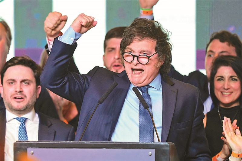【本報綜合外電報導】阿根廷總統大選第2輪投票結果出爐,極右派自由主義經濟學家米雷伊(Javier Milei)贏得超出預期的勝利。他承諾將徹底改造南美第2大經濟體,這對阿根廷苦苦掙扎的經濟及其貨幣披索的命運,具有深遠影響。米雷伊愛談陰謀論和草莽風格,常被人與前美國總統川普相提並論。