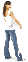 牛仔褲是娃娃裝的好拍檔。由於娃娃裝的長度大多會蓋住臀部,建議搭配靴型褲或小喇叭褲,視覺上可拉長腿部線條。林承樺攝