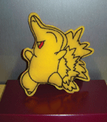 於是,我試著描繪出自己喜歡的圖案,再到手工藝店買價廉物美的不織布、中國節細線、棉花,不同的顏色配合不同的人物,將畫紙上的圖稿描繪於布面,剪下相對的兩片,然後使用各色的車縫線循圖繡上線條,活靈活現的卡通明星就這麼呈現在眼前,最後再塞入沾有香料粉(中藥店有售)的棉花,將前後片布面縫合便大功告成了。