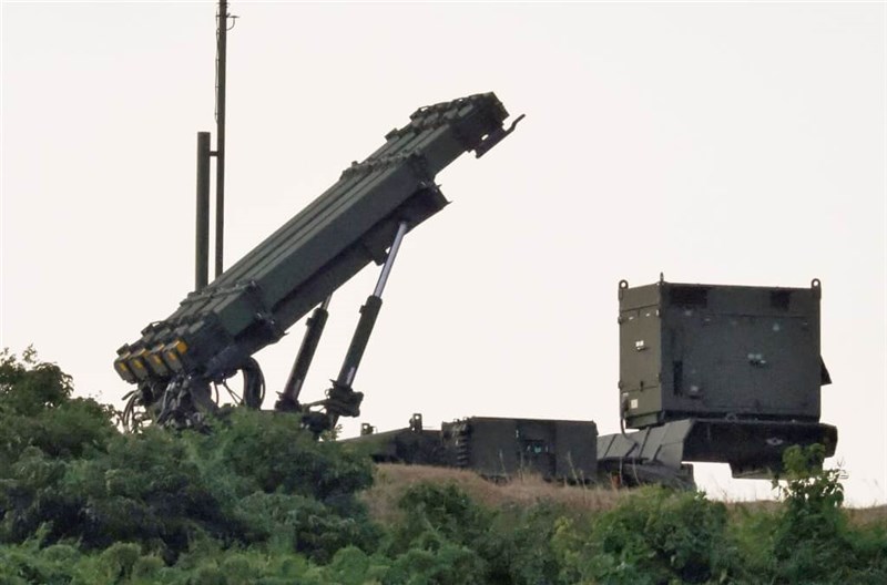 部署在宮古島的愛國者三型防空飛彈,發射架升起朝向天空進行戒備。圖/共同社