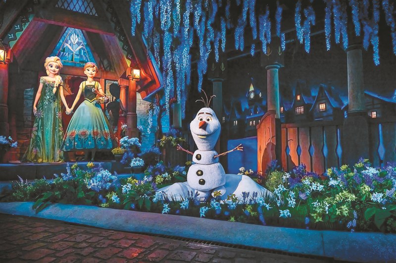 香港迪士尼樂園「魔雪奇緣世界」是全球首座《冰雪奇緣》主題園區,主要角色艾莎、安娜以及雪寶都會在園區內現身。圖/中央社
