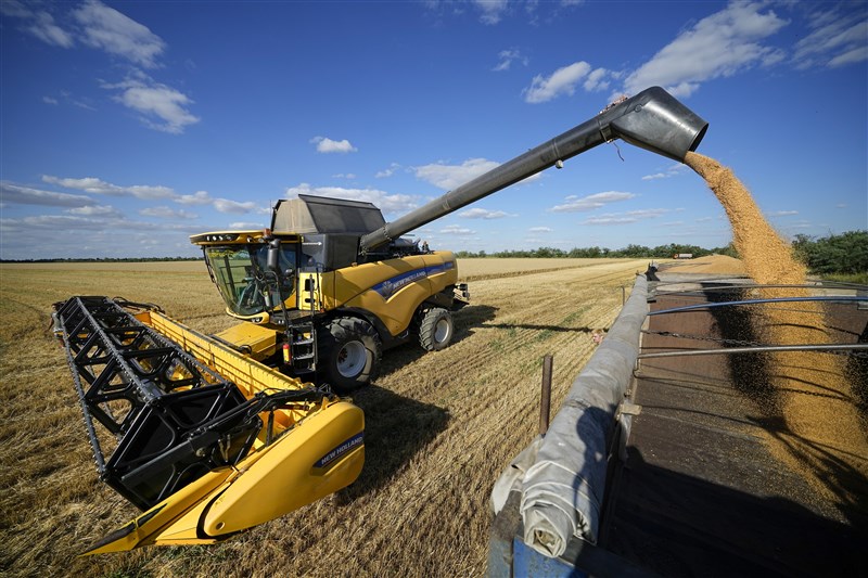 烏克蘭南方城市梅利托波爾收成小麥情形。圖/美聯社