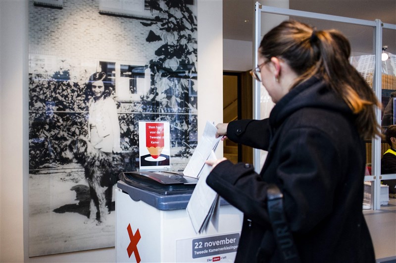 荷蘭大選22日登場,民眾在投票站投票。圖/法新社
