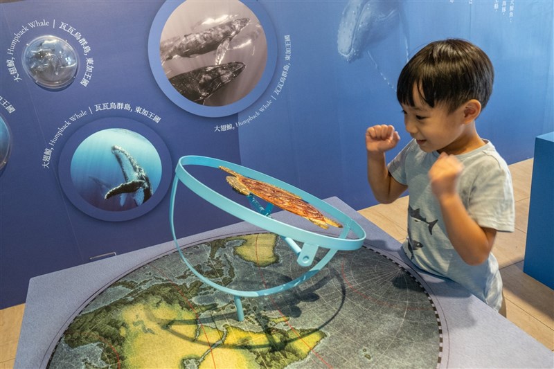 【記者王淑芬高雄報導】「哇!有美麗的鯨豚、羊毛氈海龜,美麗的海洋世界!」高雄兒童美術館新展登場,《小阿法α大未來》以海洋為核心,以設計、插畫、攝影、雕刻、編織及手作等多元媒材,呈現海洋生物角色與主題,展覽到2024年10月27日。