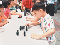節能減碳已受到社會各界重視,不時舉辦相關活動。圖為小朋友正在玩太陽能動力車。台達電子文教基金會提供
